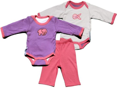 Style: Two-piece set features elephant/guppie appliqué
